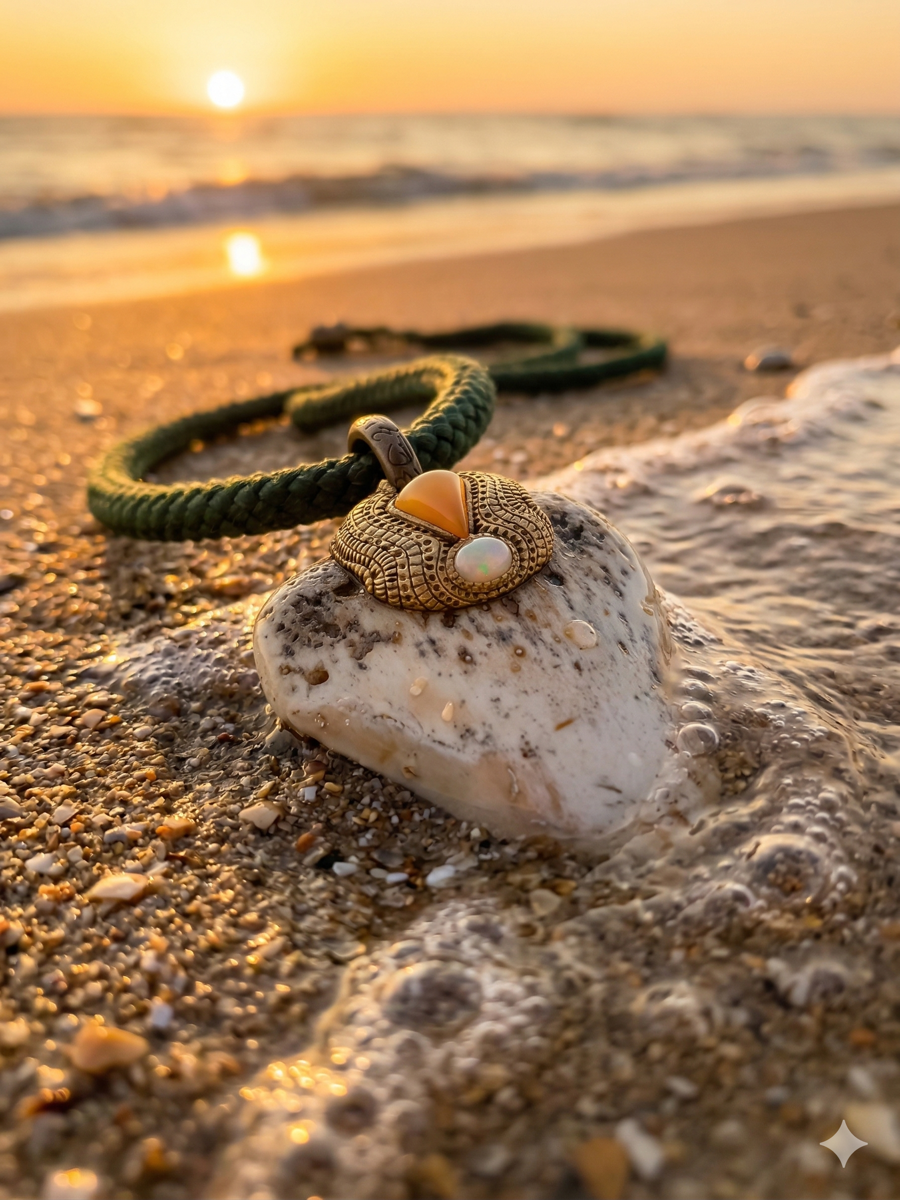 Fossil Tooth + Fire Opal
